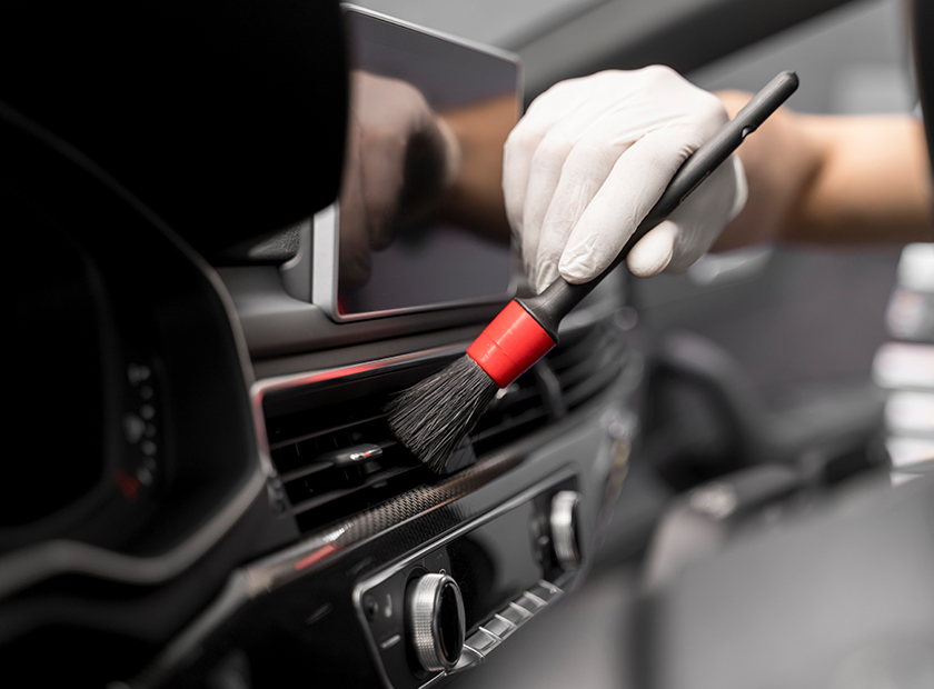 - We use specific tools to clean buttons, air vents, and other hard-to-reach areas.