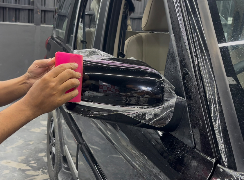 - We wash the car’s surface completely, measure and shape PPF film according to specific places where it fits well, and use specialised tools and processes to ensure a smooth, bubble-free application.